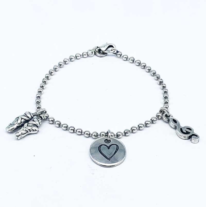 Pulsera Cadena bolas extrafina + abalorios de música + med. Peq.