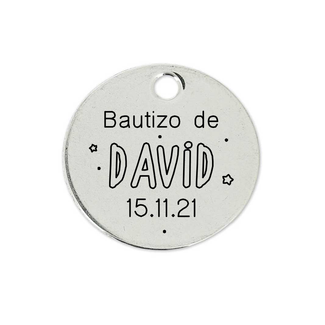 Medalla personalizada con el nombre y la fecha del niño/a como recuerdo del bautizo.