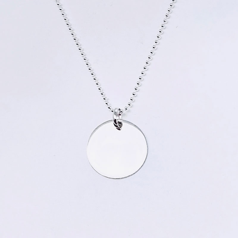Collar de bolas fino de 44cm de plata de ley con medalla grande de 20MM personalizable de plata de ley 925.