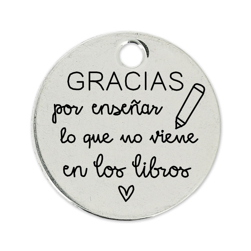 Medalla redonda de 22 mm de Zamak con un baño de plata de 5 micras. Una cara está personalizada con una de nuestras frases y tienes la posibilidad de grabar tu propio mensaje en la otra cara de la medalla.
