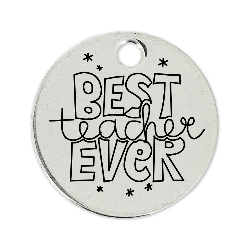 Medalla redonda de 22 mm de Zamak con un baño de plata de 5 micras. Una cara está personalizada con una de nuestras frases y tienes la posibilidad de grabar tu propio mensaje en la otra cara de la medalla.