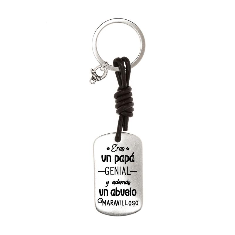 eres un papa genial y ademas un abuelo maravilloso’ Este modelo del llavero Lago es perfecto para demostrar para regalar a tu ABUELO. Con una medalla militar elaborada con Zamak y bañada en 5 micras de plata.Su cordón de cuero marrón une esta medalla a una anilla en forma de espiral para sea perfectamente adaptable a tu juego de llaves.¡Un accesorio imprescinble para la persona que más no quiere!