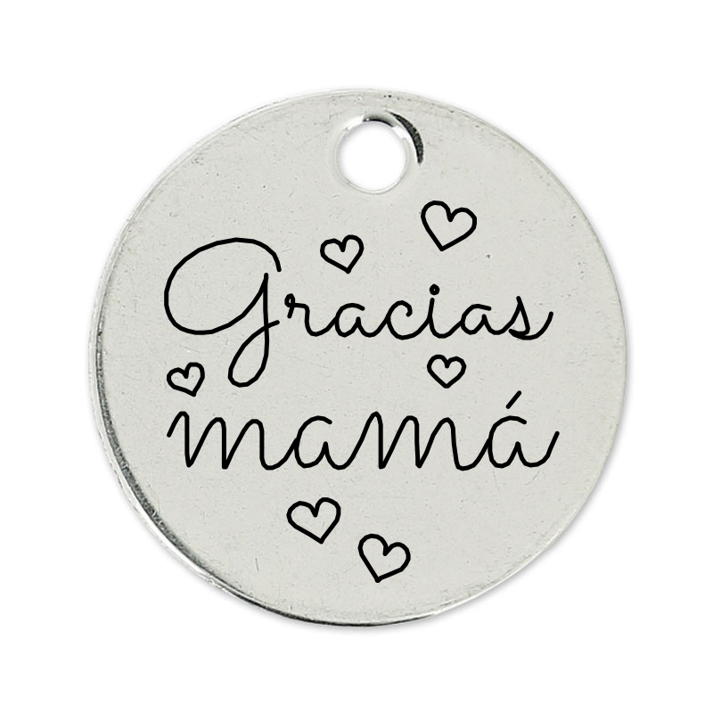 Medalla grande de 22mm elaborada con Zamak y bañada en 5 micras con la frase ‘ Gracias mamá’