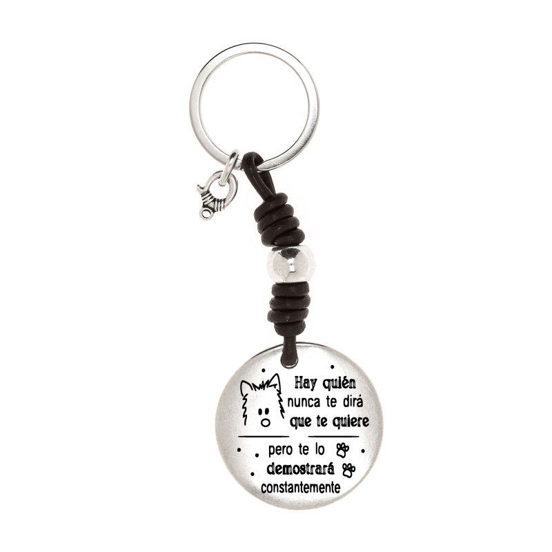 Llavero personalizado con la frase “Hay quien nunca te dirá que te quiere, pero te lo demostrará constantemente” con el dibujo de un Perrito