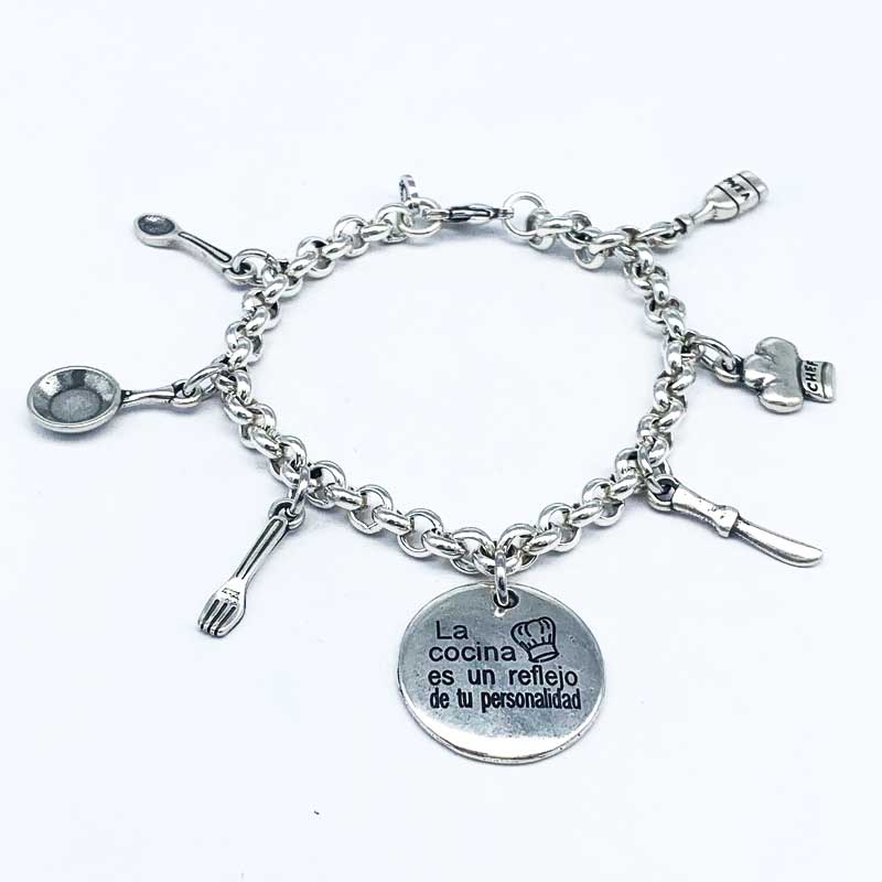 Pulsera Profesiones 2-Encadenada fina + abalorios cocina + med. Grande