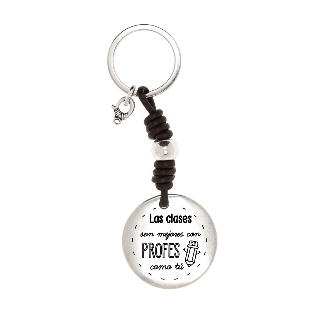 Un llavero perfecto para la persona que más sabe. ‘Las clases son mejores con profes como tu’ Personaliza este llavero por detras y desmuestrale a tu profe todo tu cariño. Elaborado con cuerron marrón y una medalla de Zamak y bañada en 5 micras de aguja este lavero es fantastico para regalar a es apersona que nos lo enseña todo. ¡Tu profe!