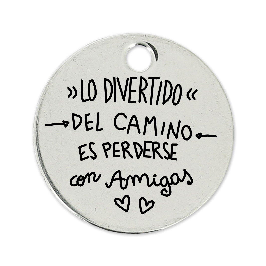 Medalla redonda de 22 mm de Zamak con un baño de plata de 5 micras. Una cara está personalizada con una de nuestras frases y tienes la posibilidad de grabar tu propio mensaje en la otra cara de la medalla.
