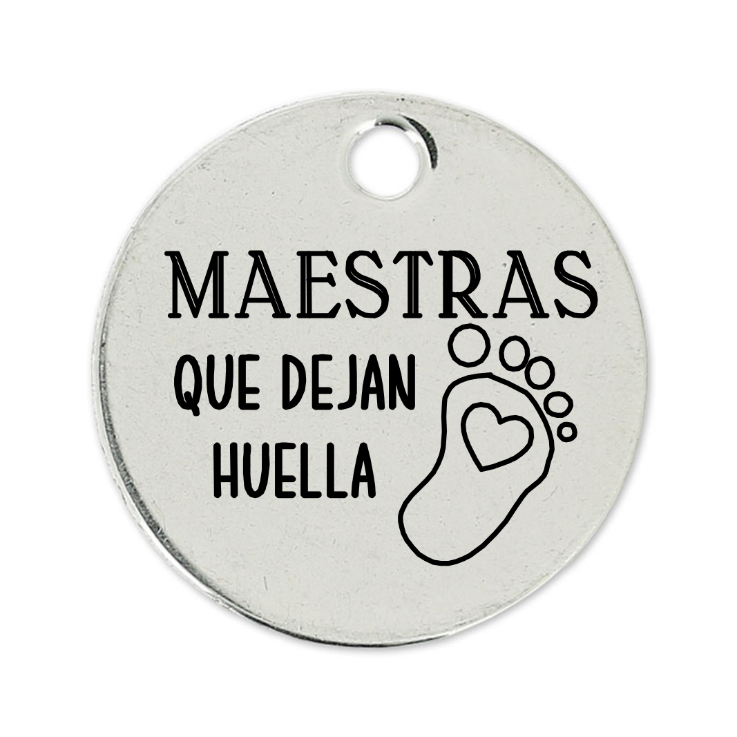 Medalla redonda de 22 mm de Zamak con un baño de plata de 5 micras. Una cara está personalizada con una de nuestras frases y tienes la posibilidad de grabar tu propio mensaje en la otra cara de la medalla.