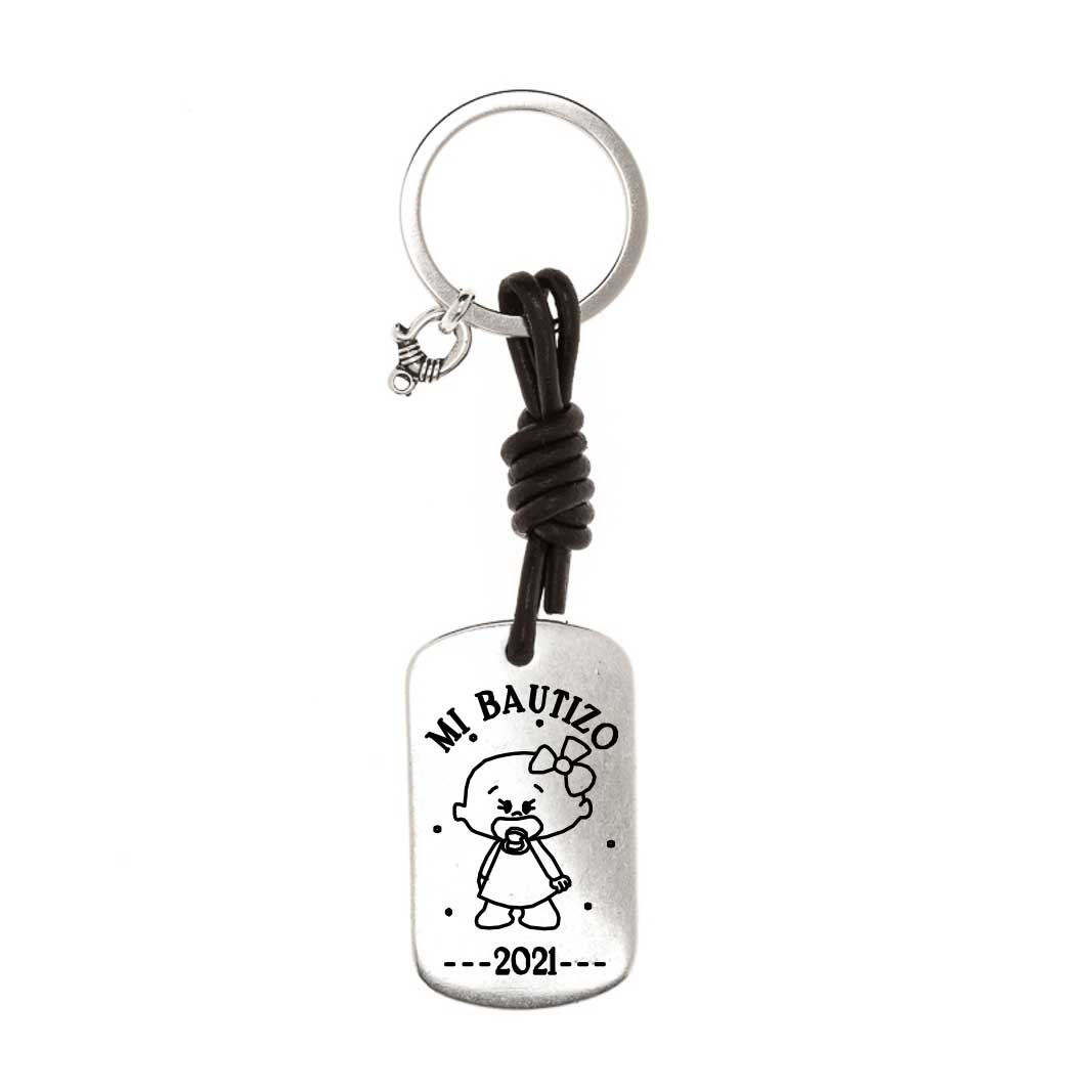 Llavero personalizado para regalar en el bautizo como agradecimiento con la frase «Mi bautizo» decorado con una niña bebe y el año de nacimiento.