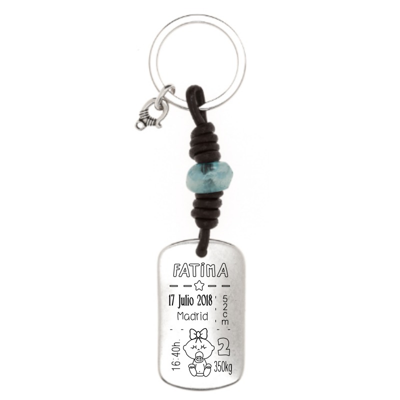 Sus dos nudos de cuero marrón junto con esta resina de color azul engarzan este llavero para darle un toque color.