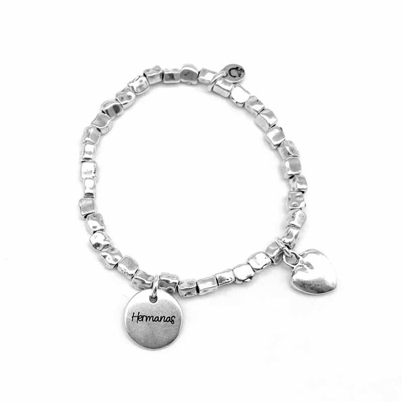 Como colgantitos lleva un corazón y un candado con unas flores grabadas súper monas y una medallita con la grabación de » Hermanas «.