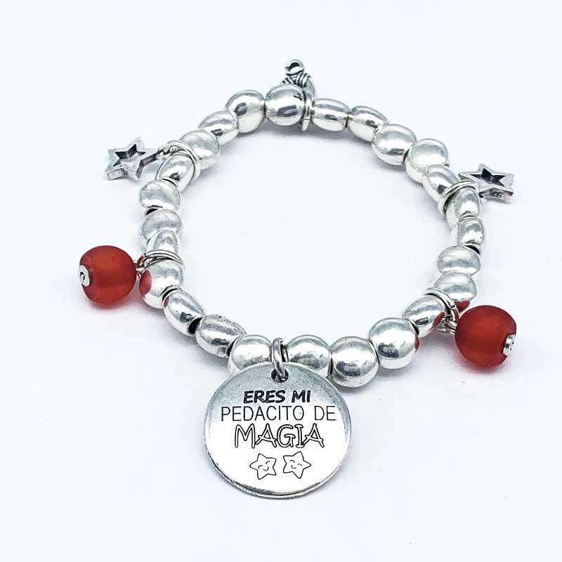 Pulsera Elástica de pepitas + estrella + bolas mate + med. Grande