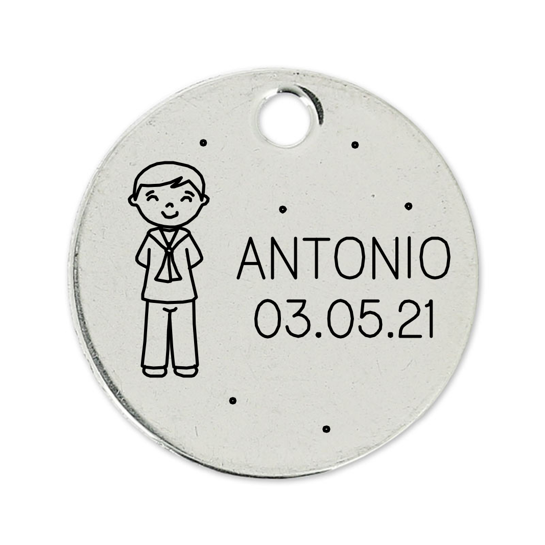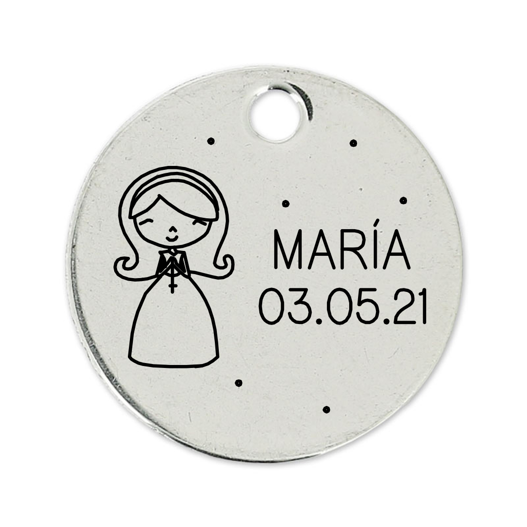 ¡Mi comunión! Medalla grande elaborada con Zamak y bañada en 5 micras de plata con un diseño perfecto para celebrar ese dia tan especial donde poner tu nombre y fecha. Con 2 opciones diferentes.