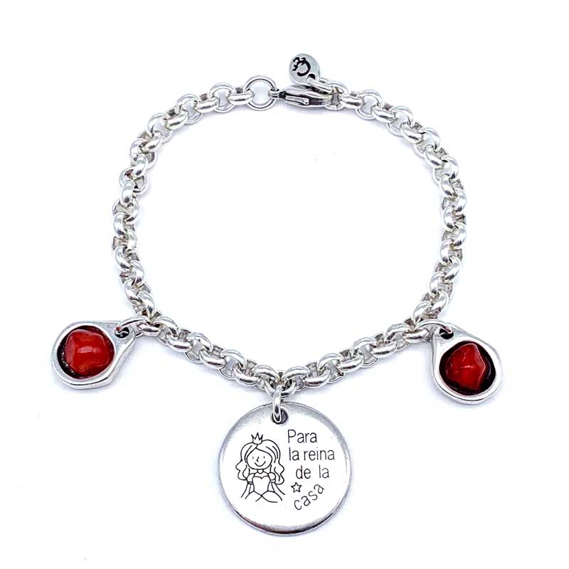 Pulsera personalizada para mamá con la frase ‘Para la reina de la casa ’. Acompañada de los abalorios resina de color rojo esta pulsera es ✨