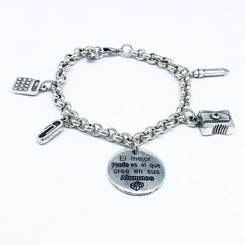 Pulsera Profesiones 11-Encadenada fina +abalorios profesora + med. Grande