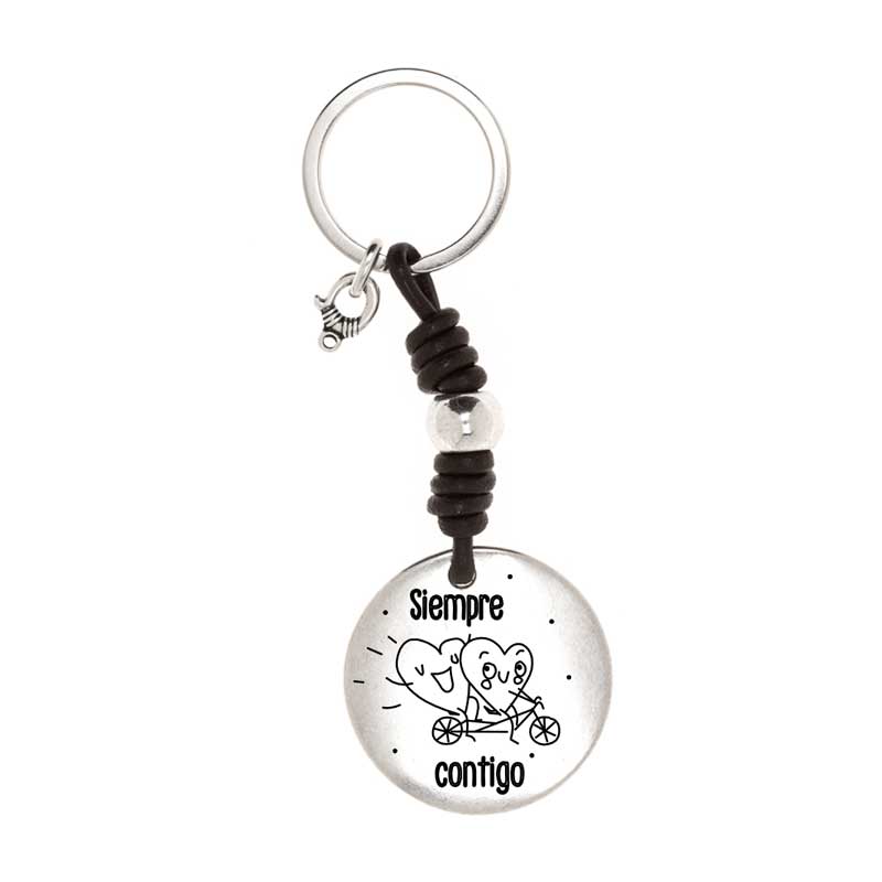 Nuestro llavero personalizado TIERRA Y LUNA formado por una medalla redonda con la frase ‘Siempre contigo’, elaborada con Zamak y bañada en 5 micras de plata.