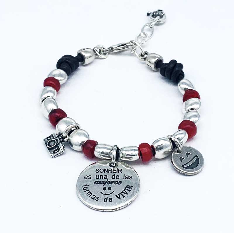 Pulsera Pepitas con resina roja + camara fotos + sonrisa + med. Grande